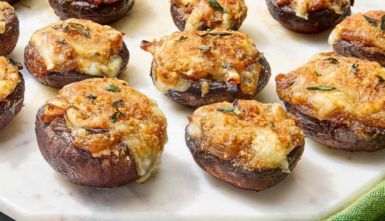 Inspired by classic French onion soup, these stuffed mushrooms pack the rich, savory flavors of caramelized onions, melted Gruyère and a hint of sherry vinegar into a bite-size appetizer. A quick broil gives the tops their golden, bubbly finish. Garnished with fresh thyme, they’re the perfect addition to holiday spreads, dinner parties or anytime you want a warm, crowd-pleasing starter.