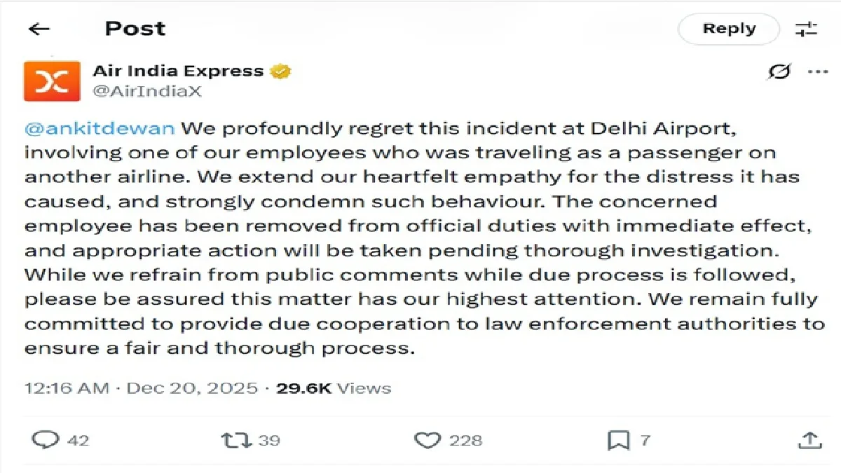 Ankit tagged Delhi Police and wrote that can’t he file a complaint after returning, will the CCTV footage disappear? Air India Express has responded to Ankit’s post. Air India Express has said that it is very sad to know about the incident that happened at Delhi Airport. In which our employee was involved. Airlines have said that pilot Captain Virendra Sejwal was traveling with another airline. Air India Express has said that such behavior is strongly condemned and we apologize. Also, Captain Sejwal has been removed from duty and investigation is being done. The airline has said that it will provide full cooperation to the concerned authorities for a fair investigation.