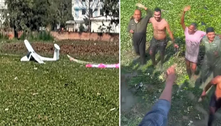New Delhi. A major accident was avoided today in Prayagraj, UP. A training microlight two-seater aircraft of the Indian Air Force developed some technical fault during flight due to which the aircraft went out of control. The pilot and co-pilot, showing wisdom, tried to land the plane in an empty space and the plane fell into a pond. It is fortunate that there were no casualties in this incident. This incident took place behind KP College located in the heart of the city. If the plane had fallen in the college or nearby populated area, there could have been major damage.