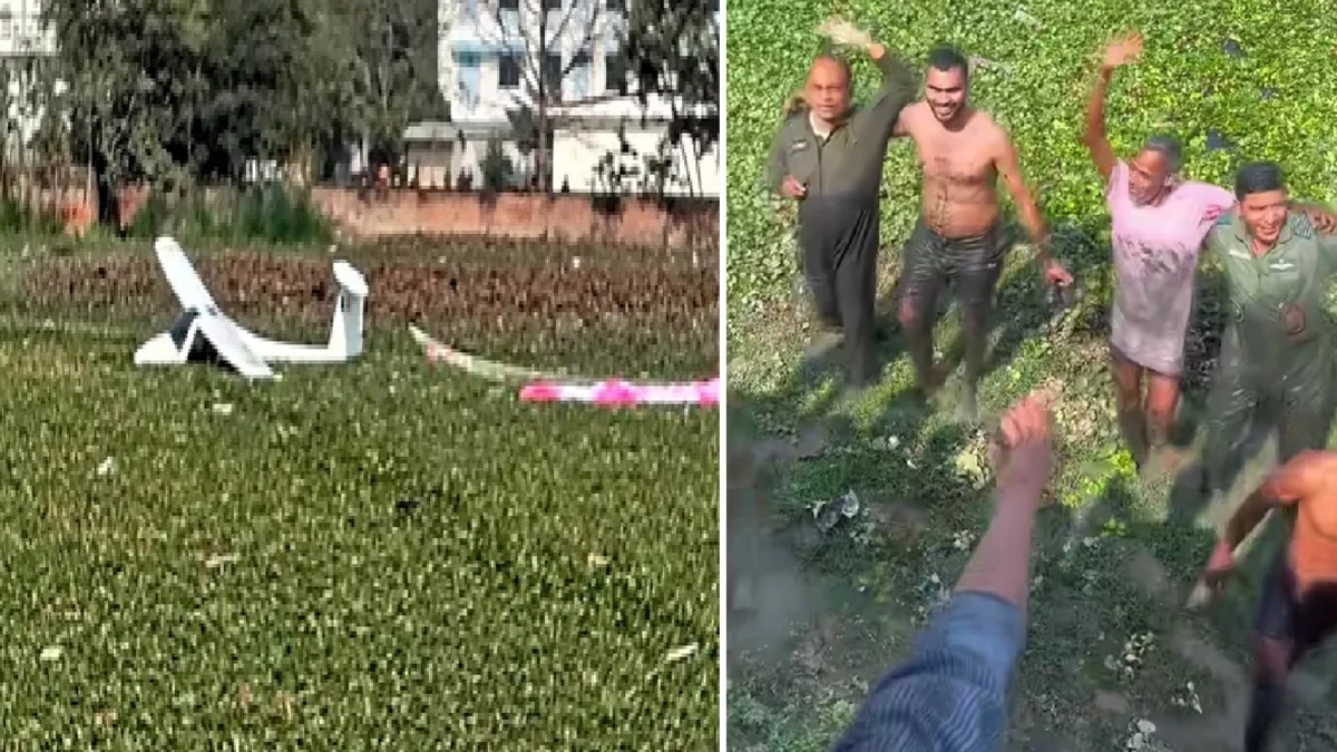It can be seen in the video that the plane flying in the air goes out of control and falls into the pond. The plane’s parachute is open. There was a large number of water hyacinths growing in the pond where the plane fell, due to which the pilots had to put in a lot of effort to rescue them from there. After the incident, local people informed the police. Police and fire brigade teams immediately reached the spot and started rescue operations. At the same time, orders have been given by the Air Force to investigate this accident. Let us tell you that Magh Mela is going on on the banks of Sangam in Prayagraj where a large number of devotees are present, hence if this plane had fallen there, there would have been a lot of loss of life.