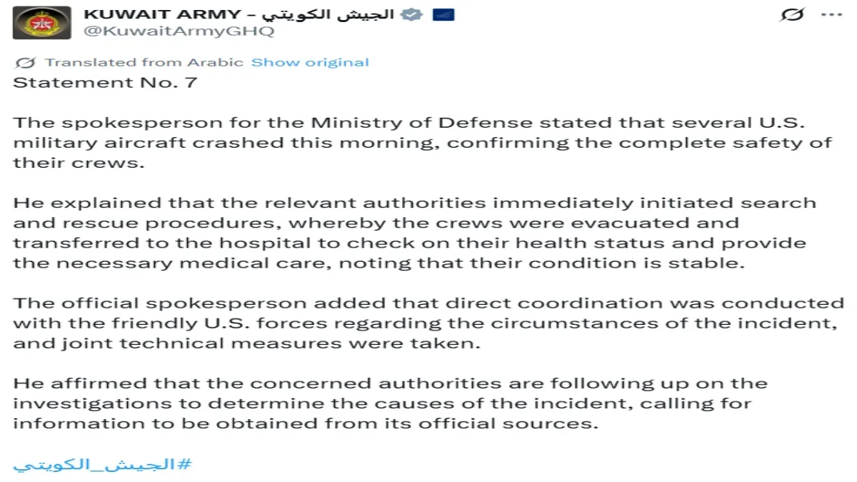 Kuwait’s Defense Ministry said in a statement that several US military aircraft crashed on Monday morning. However, their pilots’ lives were saved. The Kuwait Defense Ministry has said in a statement that after the downing of the US fighter plane, technical measures were taken in direct coordination with the US Army. The Kuwait Defense Ministry has not said whether the American fighter planes were destroyed due to a technical fault or whether they were shot down by Iran’s air defense. The fall of many fighter planes in Kuwait must have definitely shocked America, because America’s fighter planes are considered to be the most advanced in the world and America is also proud of it.