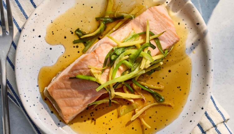 This simple ginger-scallion salmon is a dish that delivers big flavor with minimal effort. Steamed until tender and finished with sizzling ginger, scallions and a fragrant soy-sesame sauce, it highlights the natural richness of the fish while keeping the prep quick. Serve this dish for a small, at-home celebration for Chinese New Year.