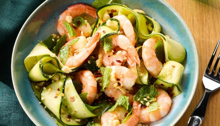 These ginger-soy zucchini noodles with shrimp are a light, flavorful no-cook dish that’s perfect for warmer days. Thinly sliced zucchini offers a crisp and refreshing base, while the sauce (made with ginger, soy and lime juice) adds bold and bright flavors. Precooked shrimp make this meal fast and convenient—just toss everything together and serve! It’s a fresh, protein-packed bowl that comes together in minutes.