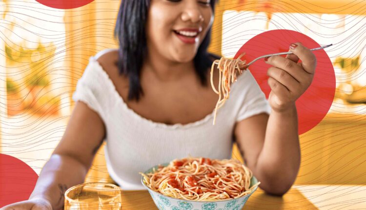 Daria Zajac, RD, LDNrecommends choosing a type of pasta that’s higher in fiber. “Opt to choose whole-grain or legume-based pastas to increase your fiber intake to support a healthy gut and to stay fuller longer,” she says. “The key is to choose heart-healthy carbs like whole grains, nonstarchy vegetables and fruits to promote health and long-term weight loss.”