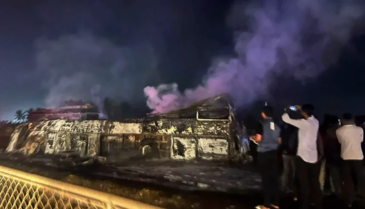 The bus with 32 passengers, which was on its way to Gokarna was engulfed in flames under the impact of the collision and most of the deceased were burnt alive inside the vehicle, East Zone Inspector General of Police Ravikanthe Gowda told reporters.