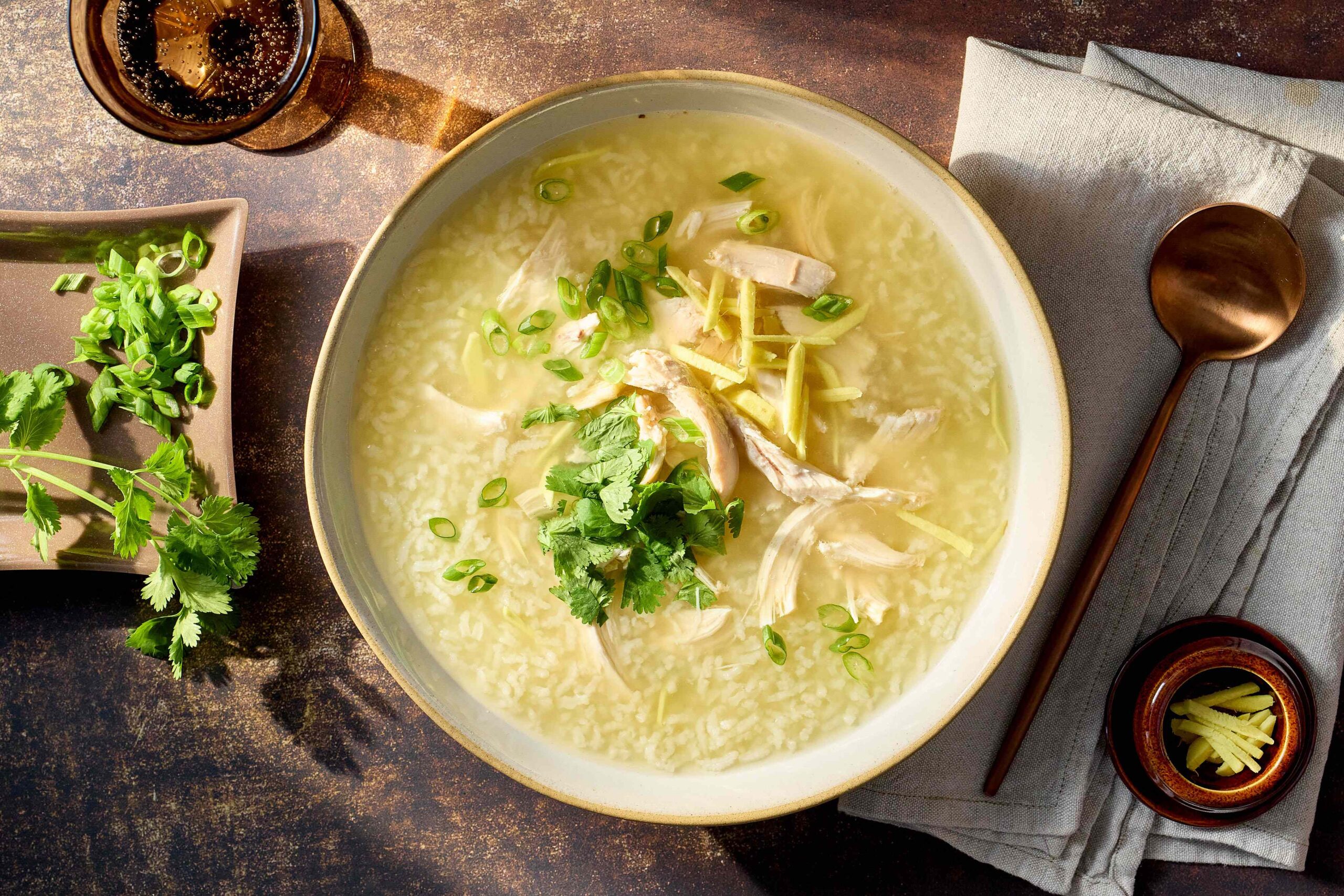 This soothing soup combines tender chicken, fragrant jasmine rice, and the gentle heat of fresh ginger. It’s nourishing, aromatic, and perfect for a comforting meal.