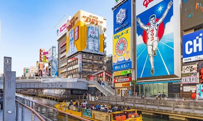 From there, walk north along the Dotonbori Canal, and Ebisubashi Bridge comes into view within three to five minutes, with the billboard on the left side of the bridge.