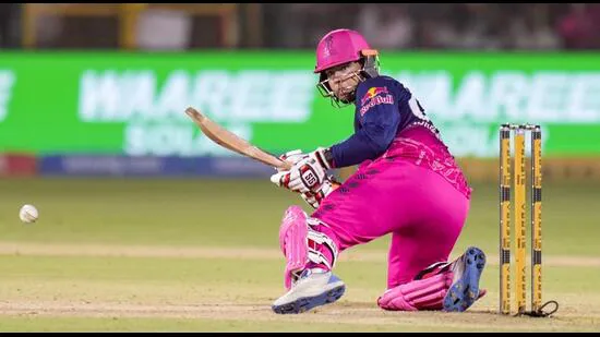 RR were flying on the back of Sooryavanshi, who was dropped on 32, despite Yashasvi Jaiswal going back early and Jurel at almost run-a-ball to 25 before cutting loose.