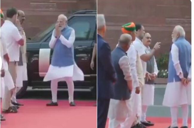 Very special picture from Parliament House, video of conversation with PM Modi and Leader of Opposition Rahul Gandhi goes viral, greeted each other with a smile