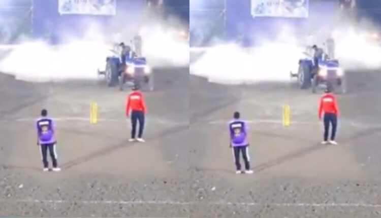 It can be seen in the video that the person suddenly comes from behind the wicket with a tractor and moves straight towards the pitch. Seeing the tractor on the field, the game stops and the batsman moves away from the pitch. After this, that person runs a tractor on the middle pitch and digs up the entire pitch. He goes out of the field without any fear. After this incident, there was chaos on the ground and a large crowd gathered.