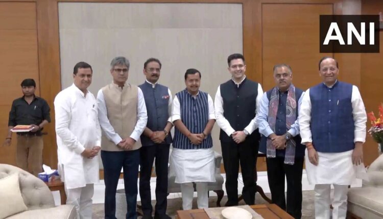 Delhi: Rajya Sabha MPs Raghav Chadha, Sandeep Pathak and Ashok Mittal meet BJP National President Nitin Nabin at the party headquarters.