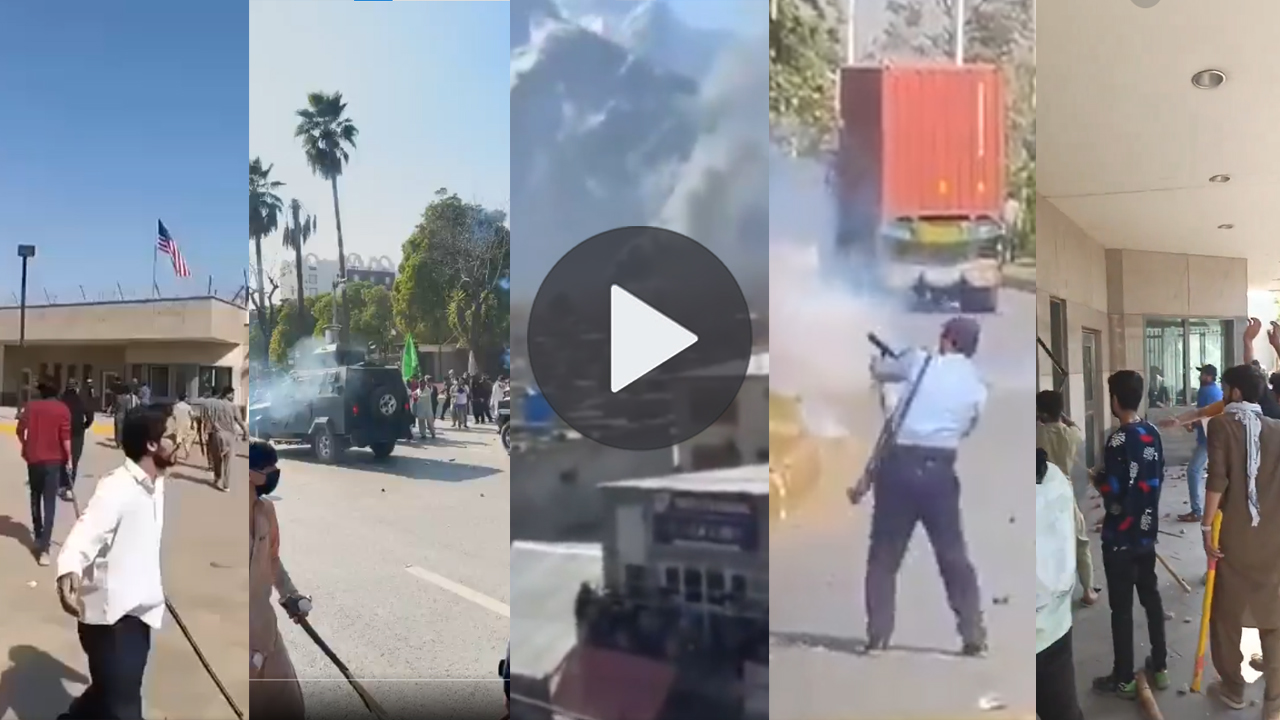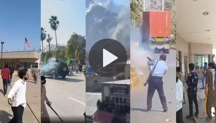 Police in Islamabad are failing to control the protesters marching towards the US embassy in the red zone. This is just as the shia pro Khamenei protesters are just getting there. pic.twitter.com/ew0oJRHkRY