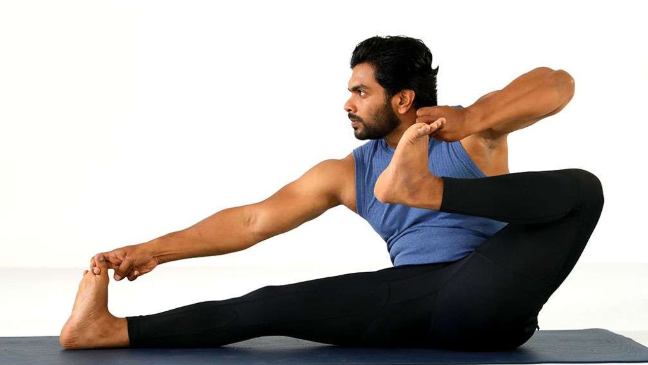 3- If you do this asana regularly, shoulders and arms get benefited. Shoulders and arms also get strengthened by this asana. The muscles of the shoulders and arms remain fully active while holding and pulling the legs, which increases the strength of the upper body. This asana also helps in removing stiffness from the shoulders and improving posture.