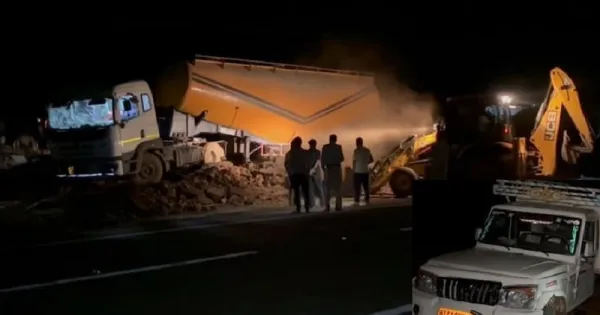 According to Gadasarai police station, the villagers of village Parswah were returning to their village in a pickup vehicle after attending a program on Saturday night. A pickup vehicle filled with villagers got punctured on the Jabalpur Amarkantak National Highway in the early hours of Sunday.