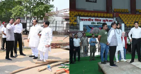 Raipur. Deputy Chief Minister Arun Sao reached Subhash Stadium and Balbir Singh Juneja Indoor Stadium on Monday morning and inspected the final preparations for Jan Akrosh Mahila Padyatra.