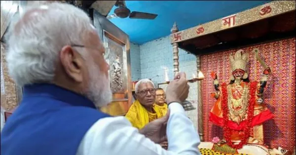 Kolkata. Prime Minister Narendra Modi on Sunday offered prayers at the historic Thantania Kalibari temple before starting his road show in north Kolkata. This temple is famous for its unique tradition of offering non-vegetarian offerings. Thantania Kalibari is one of the most ancient and revered Kali temples of Kolkata. It was founded in 1703 and its 300-year-old history predates the formal development of the city. Kali Maa is worshiped as Maa Siddheshwari and the main goddess is considered ‘Jagrat’. It is said that Ramakrishna Paramahamsa often visited the temple and sang devotional songs for Maa Siddheshwari.