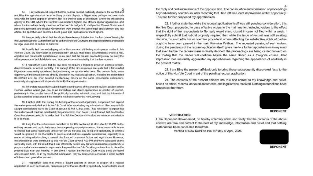 In the new affidavit, Kejriwal has raised the point that Justice Sharma’s children are panel lawyers of the Central Government. The cases are assigned to him by Solicitor General Tushar Mehta. Tushar Mehta is appearing as a lawyer on behalf of the Central Bureau of Investigation (CBI) in the excise policy case. The affidavit said this gives rise to a ‘direct and serious possibility of conflict of interest’. Kejriwal said, ‘I say that in the present case, the respected Solicitor General of India is appearing before this honorable court on behalf of the Central Bureau of Investigation. They are opposing my recusal petition, and arguing the review petition filed against the acquittal order passed in my favour. I humbly say that this raises a direct and serious suspicion of conflict of interest. The same law officers and legal machinery who are representing the prosecution before this Hon’ble Court are also part of the same institutional arrangement under which Central Government cases and government business are handed over to the immediate family members of the Hon’ble Judge hearing the case.