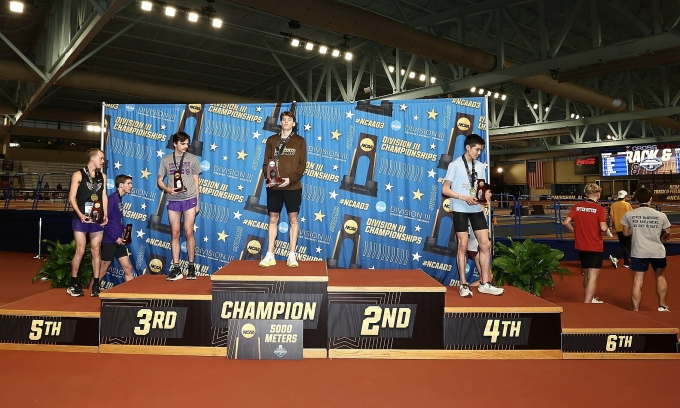 Athletes walk off the podium to avoid standing alongside the champion Seth Clevenger at the NCAA Division III Indoor Track and Field Championships on March 15, 2026. Photo taken from X |