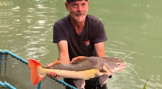 Australian tourist thrilled after landing giant catfish in Thailand
