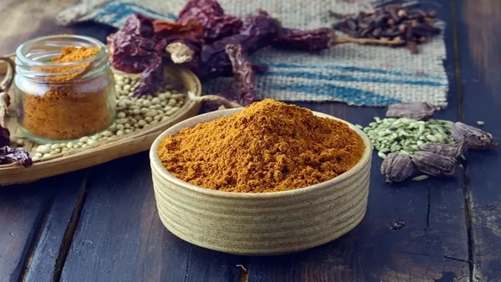 Aromatic homemade pav bhaji masala stored in an airtight container.
