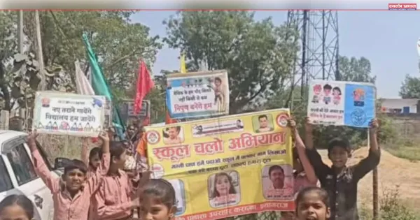 Bureau Prayagraj Karchana- With the aim of increasing awareness about education and connecting more and more children to school, a grand rally was organized by teachers and students of primary schools of Karchana area under “School Chalo Abhiyan”. Children and teachers enthusiastically participated in this rally and made the villagers aware of the importance of education.