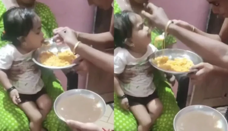It is seen in the video that the girl is first shown noodles to eat. As soon as the child opens her mouth to eat noodles, another woman feeds her ragi. Every time the child tries to understand what is being fed to her, but every time she gets ‘cheated’.