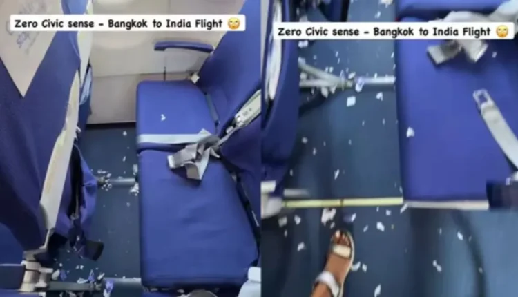 Civic Sense Debate: A video of a flight coming from Bangkok to India is becoming increasingly viral on social media, in which a pile of garbage is visible inside the cabin. In the video, pieces of boarding passes and other garbage are seen scattered on the seats and floor after the flight landing. This video has been shared on Instagram by a travel blogger named @pinkpebble, who has raised questions on this behavior of travelers.