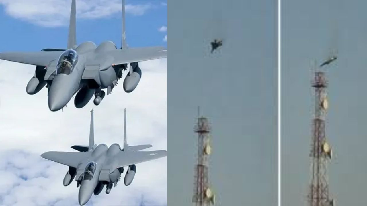 In the video surfaced on social media, an American F-15 jet was seen falling down surrounded in flames. Smoke was seen coming out of the tail of the plane and it was seen circling and falling downwards.
