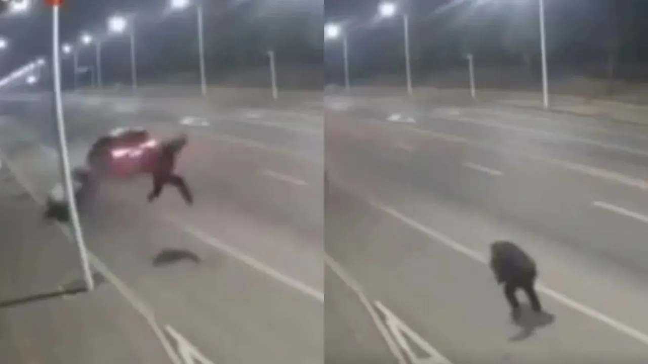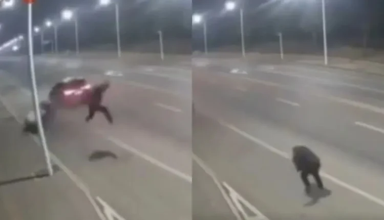 Recently a video has surfaced which has surprised people. This video is related to a road accident, but what happens in it is completely different from a common accident. This is the reason why this clip is becoming increasingly viral and people are watching it again and again.