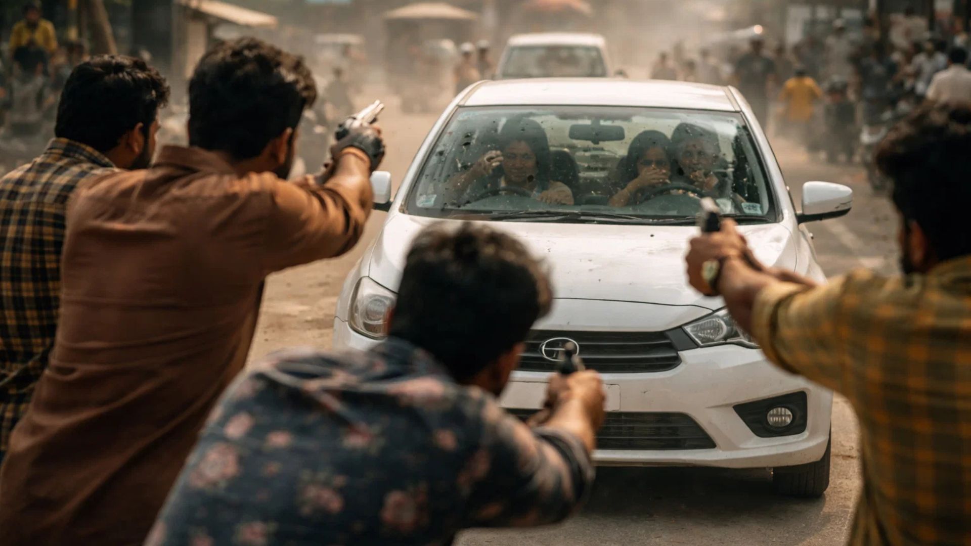 According to the statements of eyewitnesses and victims present at the scene, three youths were riding a motorcycle. They surrounded the car from behind and then started firing rapidly. In the video after the attack, it can be seen that the rear glass of the car has been completely shattered.
