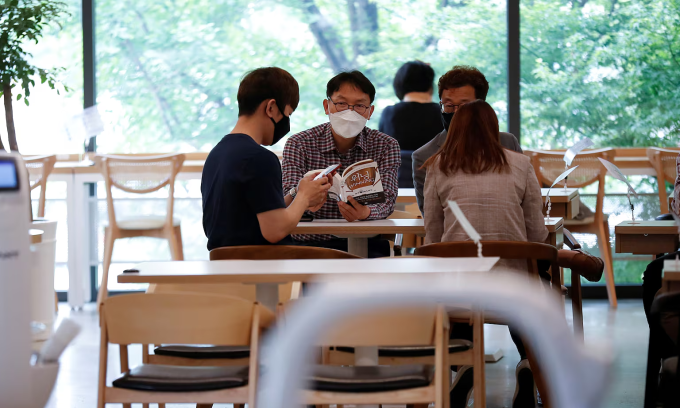 Customers wait at a cafe in Daejeon, South Korea, May 25, 2020. Photo by Reuters