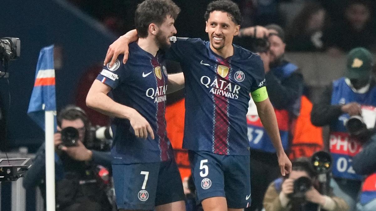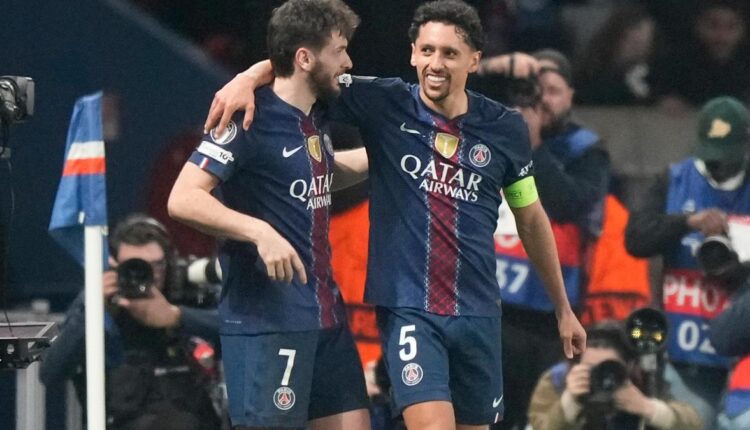A quick free kick was played down the right and Marquinhos poked home Désiré Doué’s cross from close range.