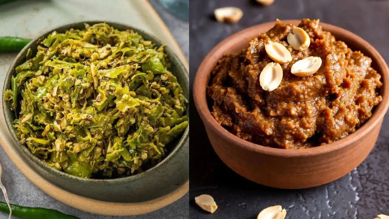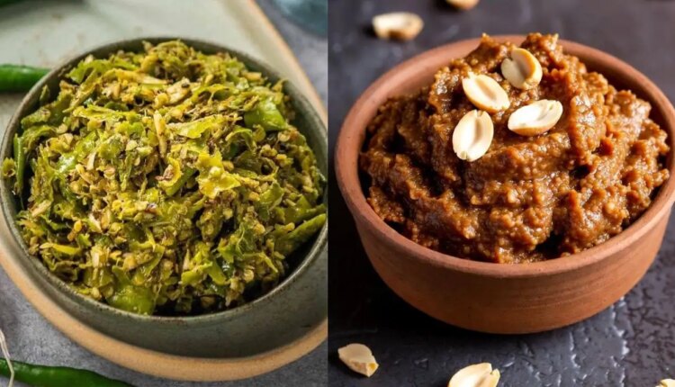 Peanut Thecha It is a famous dish of Maharashtra, which is known for its spicy and tangy taste. To make this, fry peanuts, green chillies and garlic in a pan. Then grind them coarsely in a mixer or mortar and add salt. Heat oil in a pan, add mustard seeds, and when they start crackling, add the ground peanut mixture. This spicy thecha tastes delicious with bhakri, roti or dal-rice.