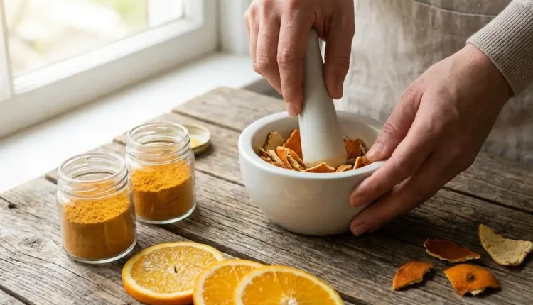 Dry the orange peels in the sun, grind them finely and make powder. Mix this powder with curd, rose water or honey and apply it as a pack on the face. Orange peels are rich in vitamin C, which promotes collagen production in the skin. This improves the complexion and helps in reducing dark spots.