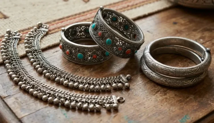 Silver Afghani Anklets with Ghunghrus