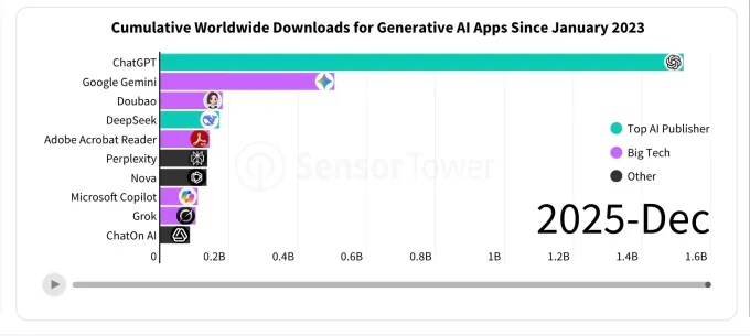 Consumers spent more on mobile apps than games in 2025, driven by AI app adoption