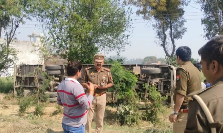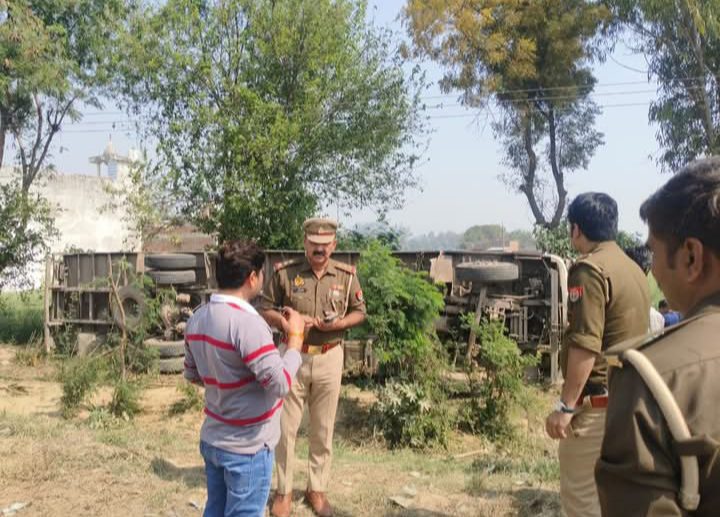 A major road accident occurred on Wednesday near village Gangajamuni on GT Road, when a vehicle coming from Etah Container (number HR 55 AK 7972) Suddenly it lost control and overturned on the roadside. The driver and conductor of the container were seriously injured in the accident.