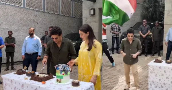 Mumbai. India cricket great Sachin Tendulkar celebrated his 53rd birthday on Friday at his home in the presence of family and fans of different age groups. His wife Anjali was also present with him on this occasion.