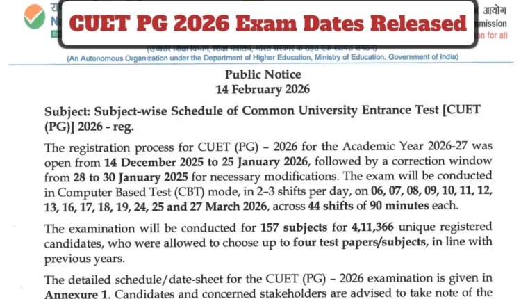 CUET PG 2026 Exam Dates Announced – Direct Link to Downalod Subject-Wise Schedule at exams.nta.nic.in – Times Bull