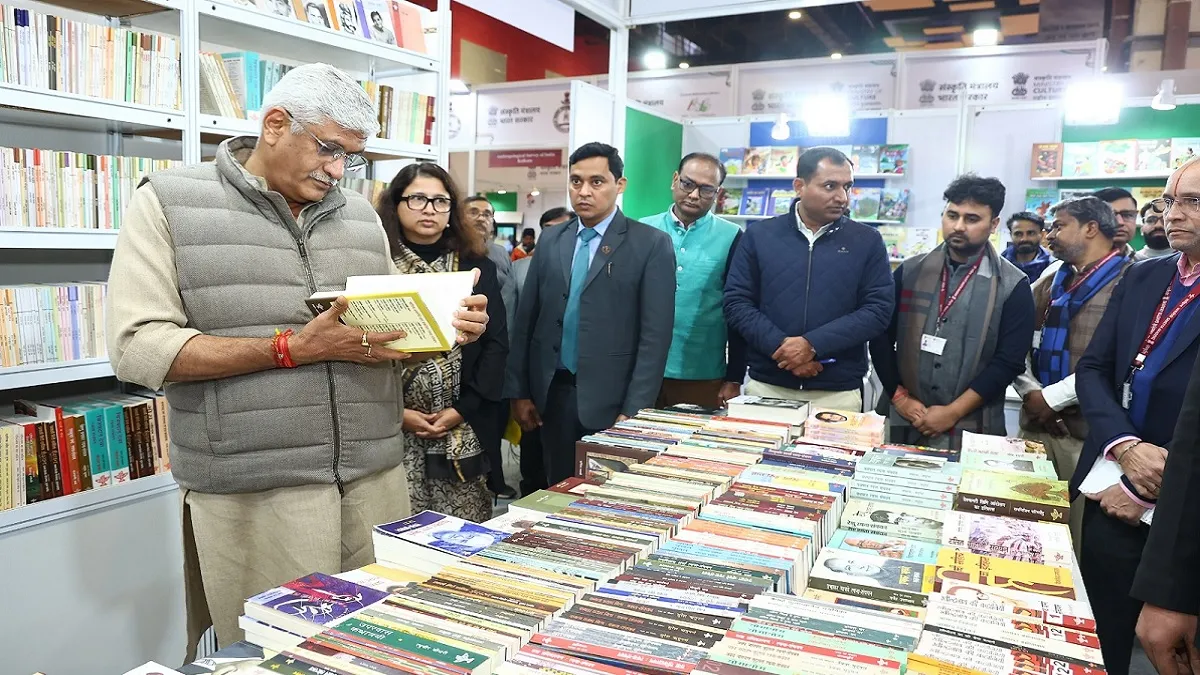 New Delhi. Honorable Culture Minister Shri Gajendra Singh Shekhawat also visited the stall of Sahitya Akademi during the inspection of the pavilion of the Ministry of Culture at the New Delhi World Book Fair on Saturday evening. On this occasion, Sahitya Akademi Secretary Ms. Pallavi Prashant Holkar welcomed him by presenting him the book of Sahitya Akademi.
