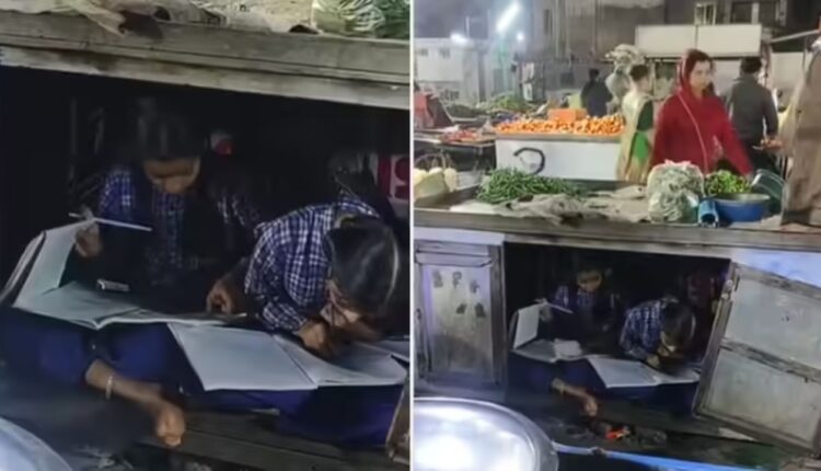 Two daughters were seen studying sitting under the vegetable cart, video of hard work and passion goes viral