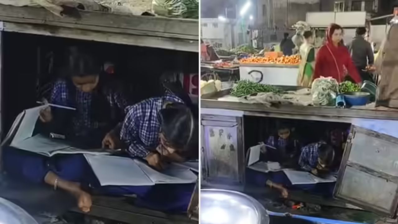 The viral video is said to be of a busy market, where there is noise and crowd all around. Amidst this environment, both these girls are seen quietly opening their books and studying. The most important thing is that the place where she is sitting and studying is very small.
