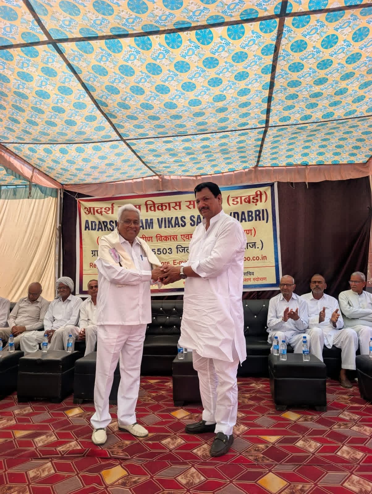 of Tehsil Bhadra Village Dabri In Adarsh Gram Vikas Sansthan A program was organized under the auspices of. on this occasion Future Sarpanch candidate Dayanand Chahar in Aggarwal Dharamshala Bhamashah Seth Niranjan Lal Mittal And Sunil Kumar Mittal Was given a grand welcome and respect.
