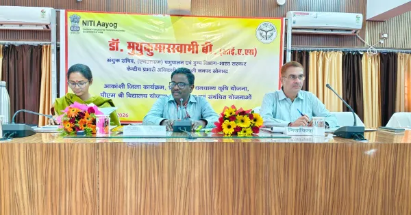 A high level meeting was organized in the Collectorate Auditorium to review the progress of various public welfare schemes of the Central and State Government under the Aspirational District Programme. The meeting was presided over by Dr. Muthu Kumar Swami B. (IAS), Joint Secretary (NLM), Animal Husbandry and Dairying Department, Government of India and Central Incharge Officer, Aspirational District Sonbhadra.