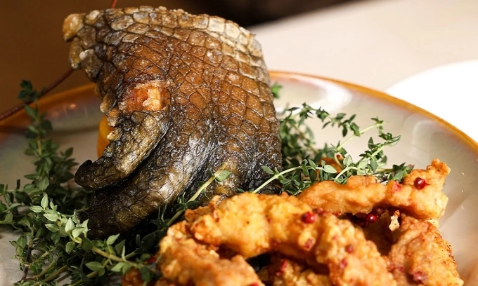 The dish featuring crocodile feet at RISE restaurant in Marina Bay Sands resort, Singapore. Photo from Instagram/@riserestaurantsg |