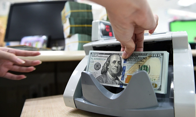 An employee counts U.S. banknotes at a bank in Hanoi, Nov. 14, 2022. Photo by VnExpress/Thanh Tung