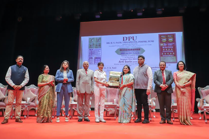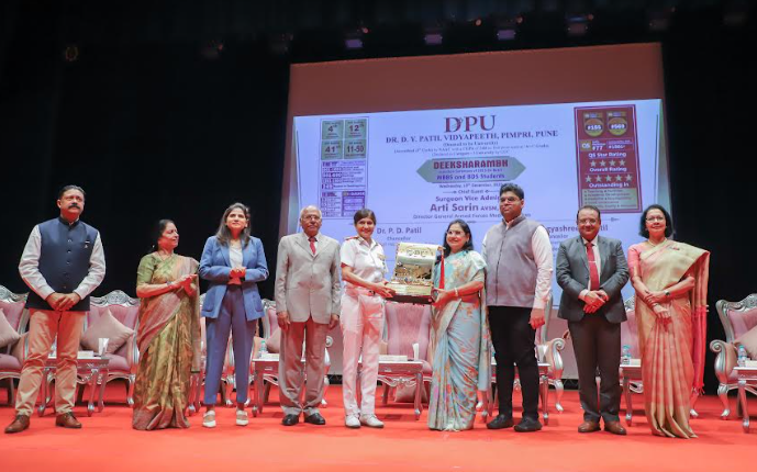 Distinguished dignitaries at the induction included Surgeon Vice Admiral, Arti Sarin, AVSM, VSM, Director General Armed Forces Medical Services; Dr. P. D. PatilChancellor, Dr. D. Y. Patil Vidyapeeth, Pimpri, Pune; Dr(Mrs,) Bhagyashree P, PatilPro Chancellor, Dr. D. Y. Patil Vidyapeeth, Pimpri, Pune; Dr. NJ PawarVice Chancellor, Dr. D. Y. Patil Vidyapeeth, Pimpri, Pune; DrSmita Jadhav, Pro Vice Chancellor of Dr. D. Y. Patil Vidyapeeth, Pimpri, Pune and Secretary of Dr. D. Y. Patil Vidyapeeth Society, Pune; DrYashraj P, PatilTreasurer of Dr. D. Y. Patil Vidyapeeth Society; Dr. Somnath P. Patil, Pro Chancellor, Dnyan Prasad Global University, Pune and Secretary of Dr. D. Y. Patil Unitech Society; Dr. Rekha Arcot, Dean of Dr. D. Y. Patil Medical College, Hospital & Research Centre, Pimpri, Pune; Dr. Brig. S. K. Roy Chowdhury, SM (Retd.), Dean of Dr. D. Y. Patil Dental College, Pimpri, Pune; Dr. J. S. Bhawalkar, Registrar, Dr. D. Y. Patil Vidyapeeth, Pimpri, Pune; and Dr. P. VatsalaswamyDirector Academics, Dr. D. Y. Patil Medical College, Hospital and Research Centre, Pimpri, Pune. Faculty members, administrative staff and current students extended a warm welcome to the new batch. In addition to introductory speeches, the ceremony included an overview of the institution’s vision, values, academic programs and resources available to support students throughout their educational journey. The 2025–26 induction ceremony welcomed 250 MBBS and 100 BDS students.
