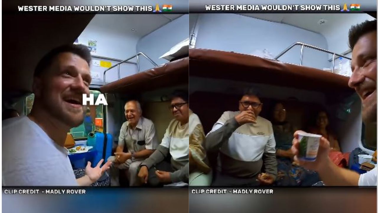 It is seen in the video that when the vlogger is having lunch in 1AC, an Indian woman starts talking to him. Gradually the whole family gets along well with him. They make him sit with them, offer him food and later serve him tea. A funny moment also occurs, at which everyone is seen laughing.