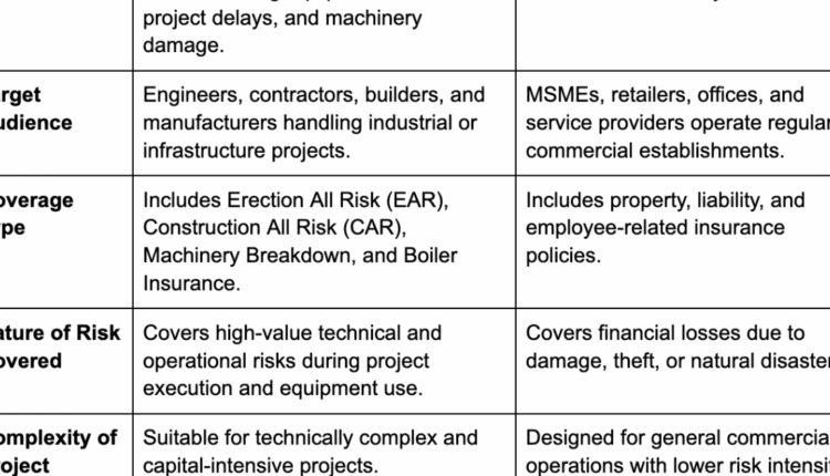 Engineering Insurance vs Standard Business Insurance – Key Differences