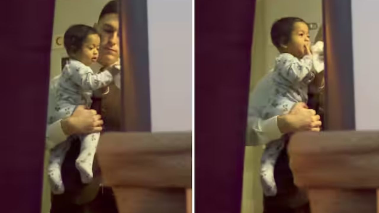 Cabin Crew Viral Video: These days, a heart-touching video related to Etihad Airways is going viral on social media. In this video, during the flight, a cabin crew member is seen lovingly playing and calming a small child in his lap. This video has been shared by the child’s mother Divya Thilee (@divya_thilee) on her Instagram account.